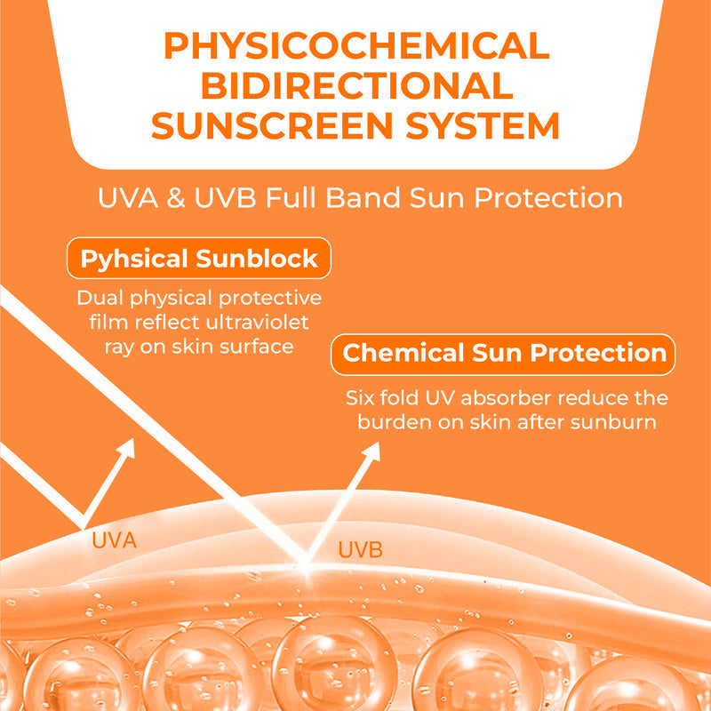 Experience next-generation sun defense with our Physicochemical Bidirectional Sunscreen System – a breakthrough fusion of 30% Rice Extract and Probiotics. Engineered for all skin types, this SPF 60+ PA++++ shield delivers full-spectrum UVA/UVB protection while brightening skin, strengthening barriers, and defending against pollution. Its ultra-light, matte-finish gel absorbs instantly – zero white cast, zero grease.